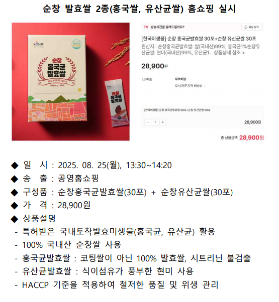 순창 발효쌀 2종(홍국쌀, 유산균쌀) 홈쇼핑 실시