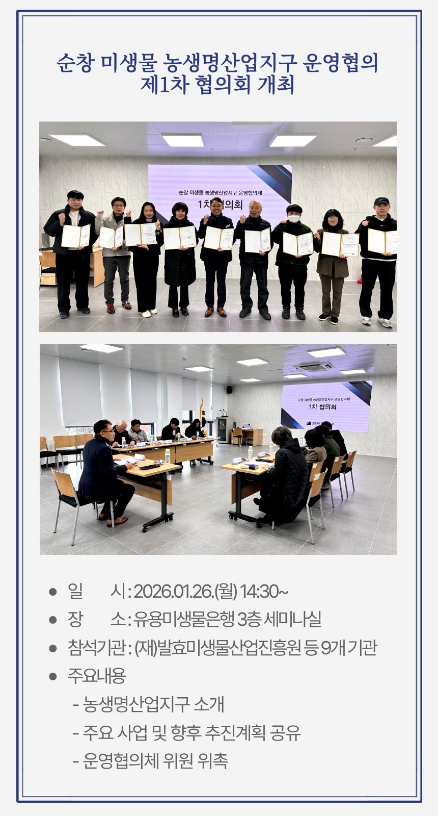 순창 미생물 농생명산업지구 운영협의 제1차 협의회 개최