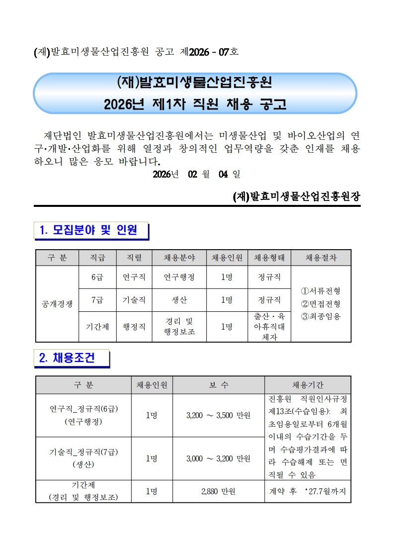 2026년 (재)발효미생물산업진흥원 제1차 직원 채용 공고문 및 직무기술서.pdf (