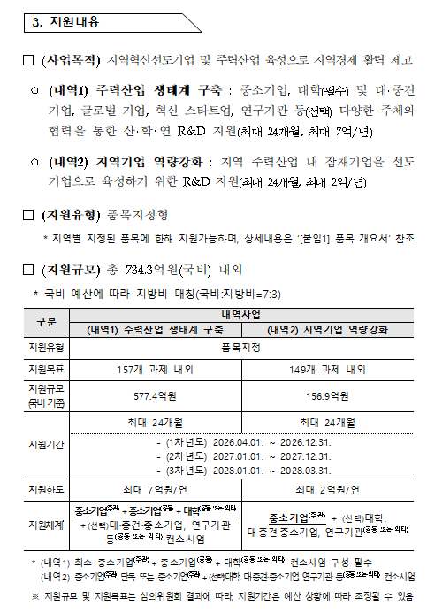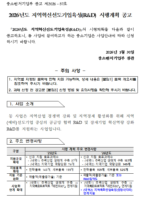 (외부기관 사업공고) 2026년 지역혁신선도기업육성(R&D) 사업 공고