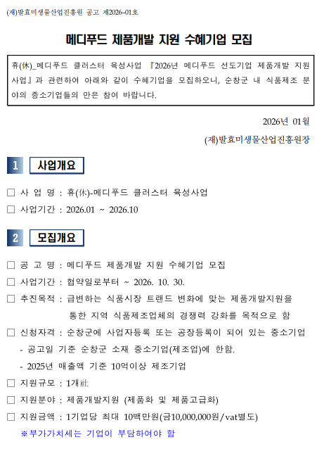 붙임_1_2026년_메디푸드 선도기업 육성사업_공고 (연장_2026.02.13까지).pdf (